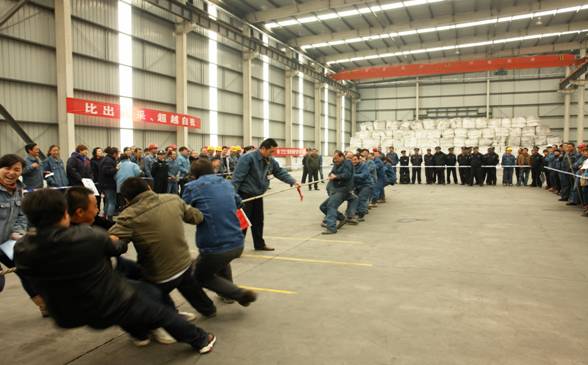 經(jīng)過賽前的精心準備和熱身訓(xùn)練,隊員為集體爭取榮譽,賽出了亮點。拔河比賽是考驗一個團隊凝聚力、合作精神以及組織紀律性的最好時機,賽場外不時爆發(fā)出陣陣熱烈的加油助威聲,場上隊員鼓足了勁兒,連平時優(yōu)雅秀麗的女士們此時也變成了大力士。最后,經(jīng)過激烈的淘汰賽,長春炭素有限公司、電解一車間、電解二車間、鑄造車間隊進入了最后的決賽。在比賽中,不少隊員的手磨破了皮,但卻沒有人在意,正是這頑強拼搏的精神鑄就了我們物產(chǎn)北川工業(yè)園區(qū)蓬勃向上的生命力。