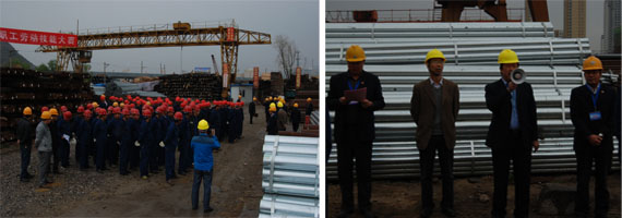 為落實(shí)集團(tuán)總公司《2014年安全生產(chǎn)工作要點(diǎn)》,豐富物產(chǎn)配送公司基層班組建設(shè),促進(jìn)一線職工綜合技能水平提升,以《吊裝作業(yè)規(guī)范手勢(shì)》為標(biāo)準(zhǔn),檢驗(yàn)公司一線司吊作業(yè)人員執(zhí)行國(guó)家規(guī)范手勢(shì)、司吊作業(yè)操作規(guī)程的實(shí)際效果,保證全年安全控制目標(biāo)的實(shí)現(xiàn)。物產(chǎn)配送公司在前期宣傳動(dòng)員、學(xué)習(xí)培訓(xùn)、實(shí)戰(zhàn)演練的基礎(chǔ)上,于2014年5月17日上午,舉行職工勞動(dòng)技能比武大賽。集團(tuán)總公司黨委書(shū)記白家林、集團(tuán)黨群工作部部長(zhǎng)趙宗青、安全環(huán)保部干事劉軍蒞臨現(xiàn)場(chǎng)指導(dǎo)。