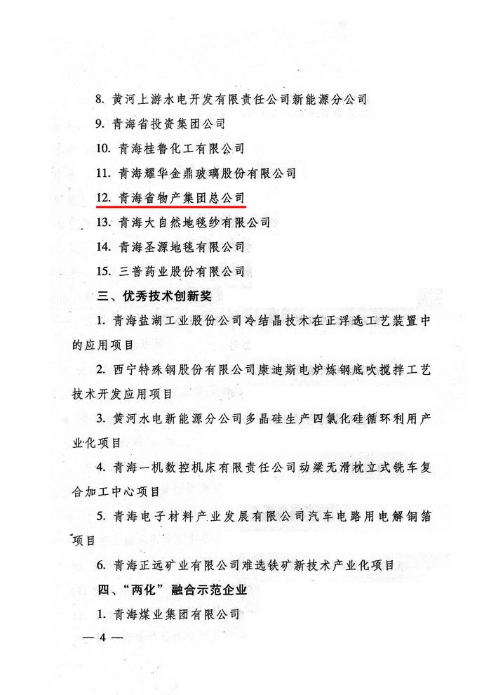 2012年,青海省物產(chǎn)集團(tuán)總公司在省委、省政府及省國資委的大力支持和領(lǐng)導(dǎo)下,集團(tuán)總公司按照全省工業(yè)經(jīng)濟(jì)總體部署和要求,著力推進(jìn)工業(yè)項目建設(shè),榮獲"2012年度工業(yè)投資貢獻(xiàn)獎"。