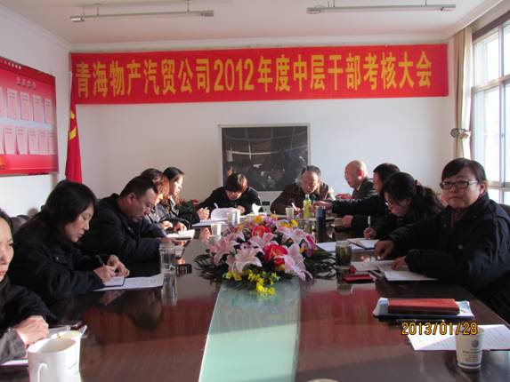 2013年1月28日,青海物產(chǎn)汽貿(mào)公司召開了2012年度中層干部考評(píng)會(huì)議,公司領(lǐng)導(dǎo),各部、海東分公司負(fù)責(zé)人,公司中層副職和重點(diǎn)崗位、骨干員工代表共28人參加了會(huì)議。會(huì)議由黨支部書記黃曉梅主持,總經(jīng)理張宏民做了重要講話。